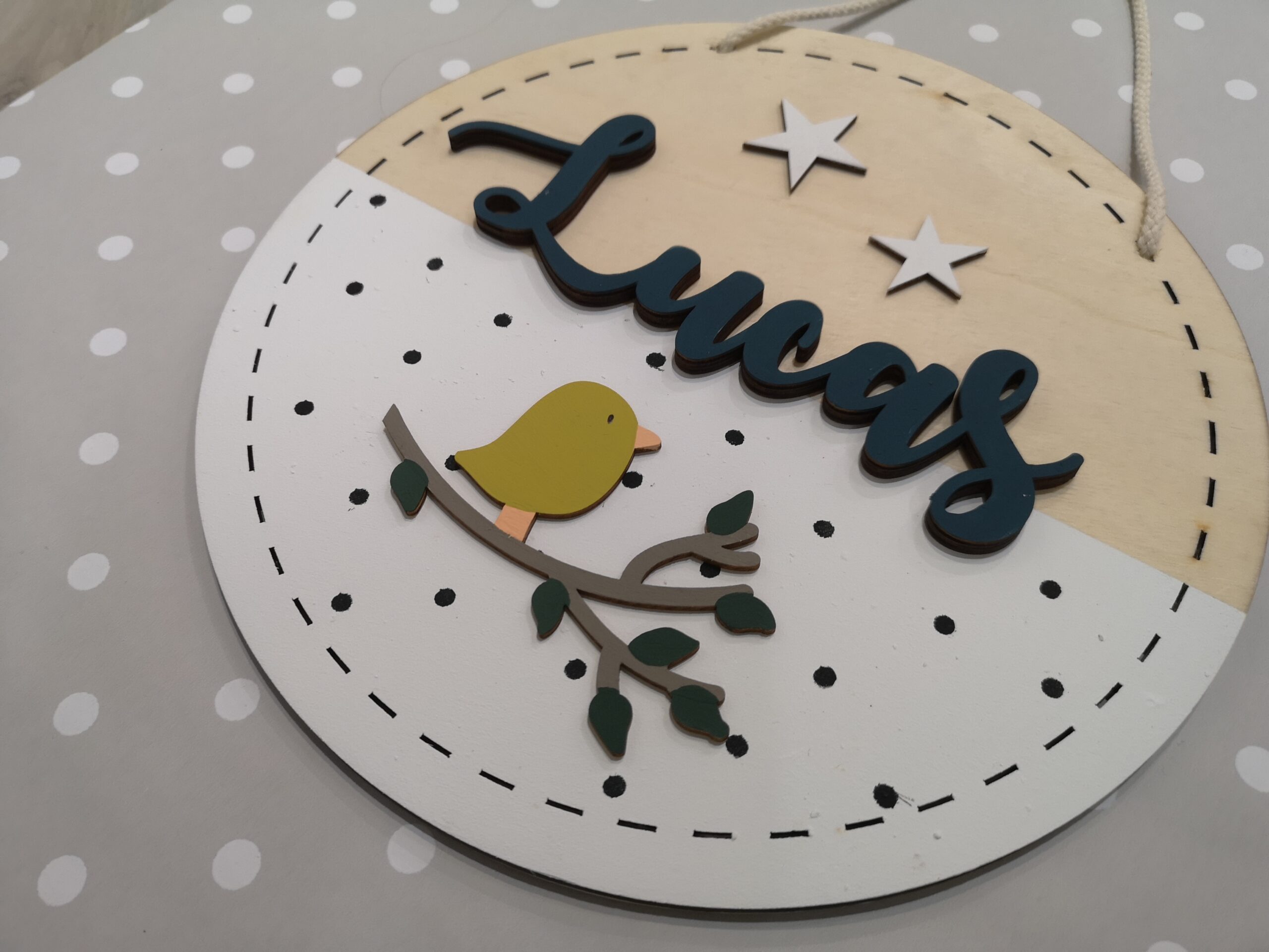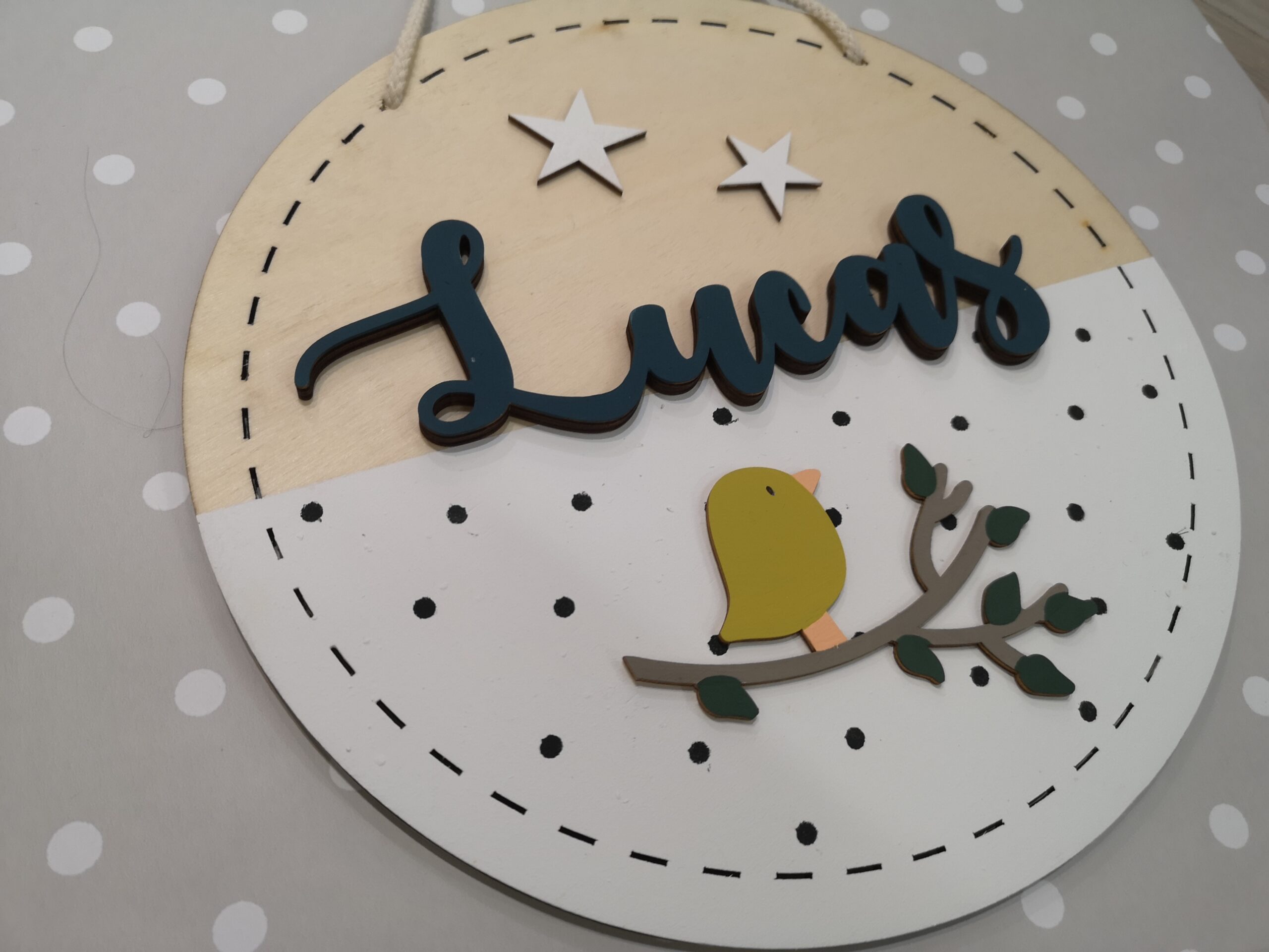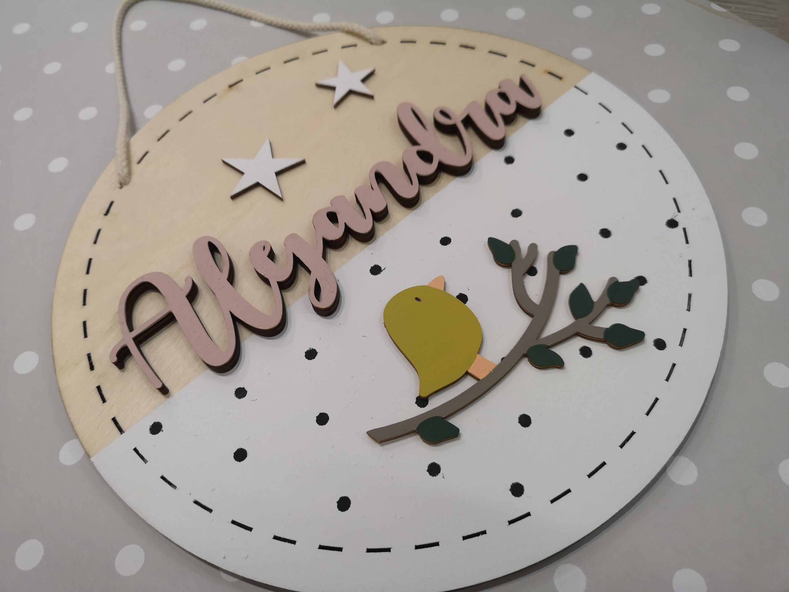 Ideal para decorar habitaciones infantiles o como cartel de bienvenida para recién nacidos.