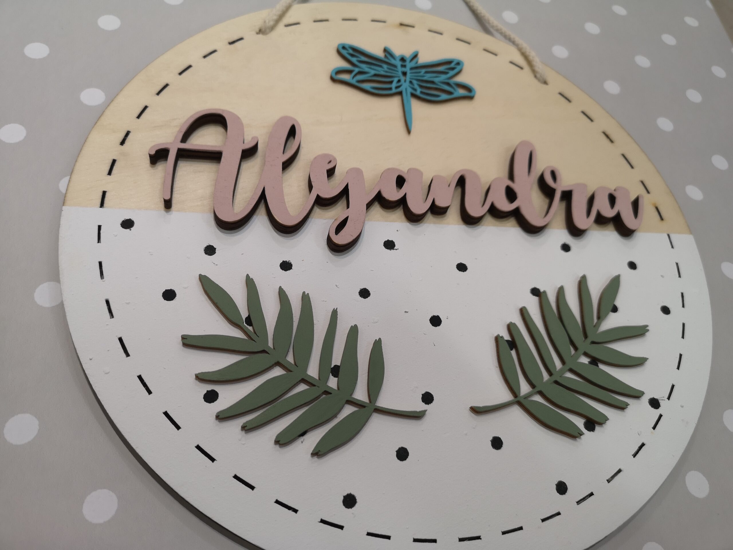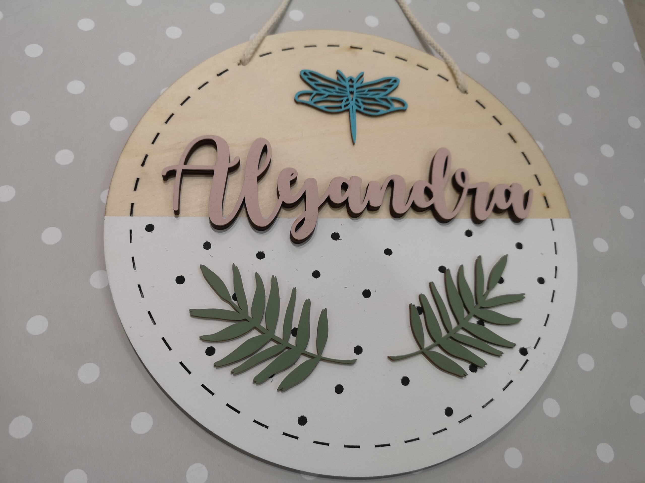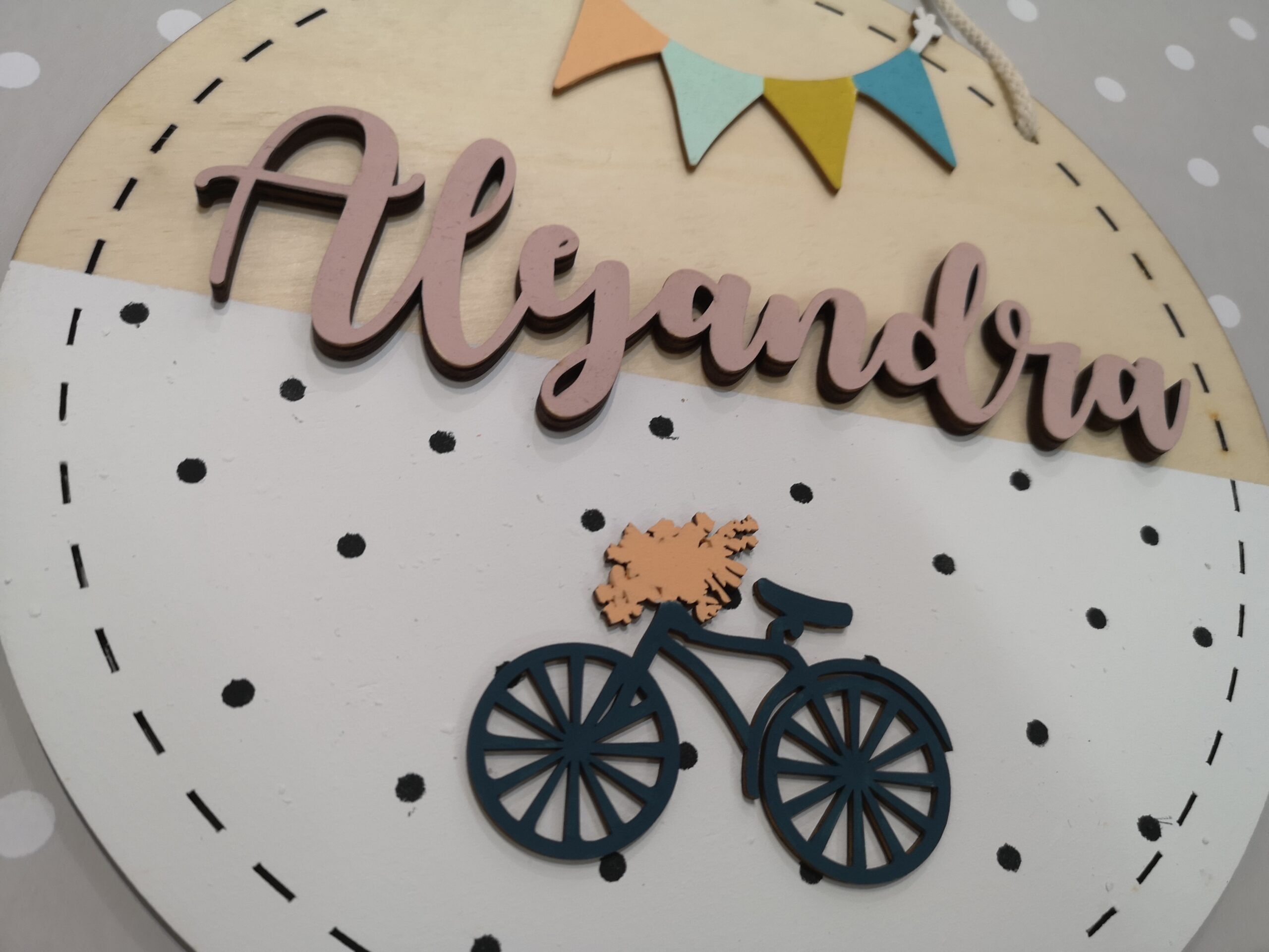 Cartel de madera personalizado con el nombre del niño o niña que quieras. Pintado a mano con mucho amor.